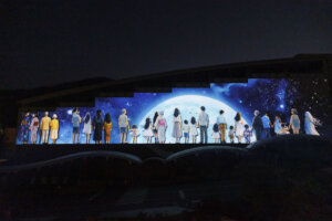 屋外壁面をスクリーンにした、迫力あるプロジェクションマッピング。