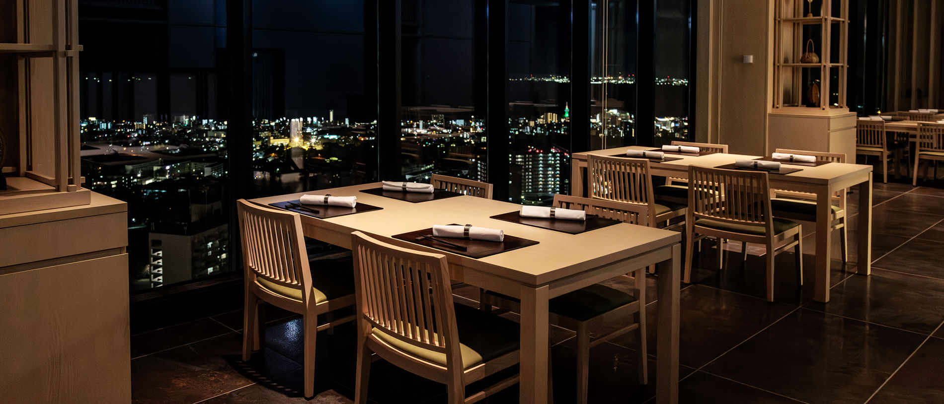 お席は、別府の街並みを望むテーブル席と、落ち着いた雰囲気の半個室をご用意しております。 ご家族での記念日のお祝い、大切な方との特別な時間、あるいはご接待など、さまざまなシーンでご利用ください。 ゆったりとした時間の中で、一品ずつお料理をお楽しみいただけます。